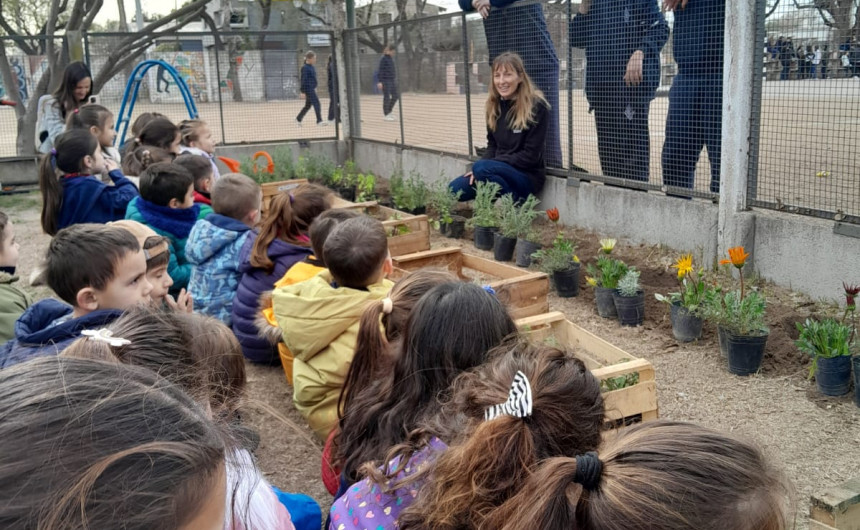 Los más pequeños recibieron kits para armar hoteles de insectos y participaron en la plantación de plantines con flores y aromáticas, promoviendo así espacios que atraen polinizadores y favorecen la biodiversidad.